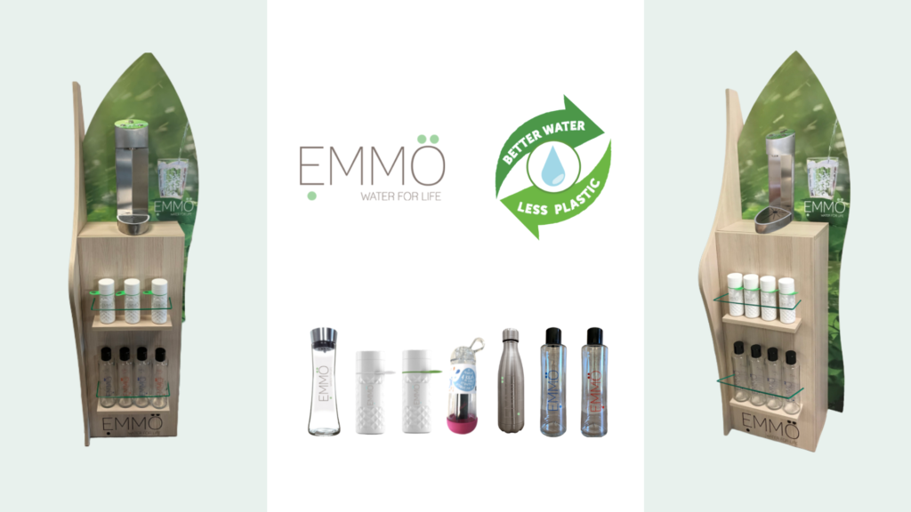 Ce modèle peut donc être entièrement proposé sur mesure en fonction de vos besoins. Notre démarche ne serait pas complète sans joindre à nos fontaines une gamme de contenants éco-responsable dont notre exclusivité est la gourde EMMÖ en fibre de canne à sucre.
