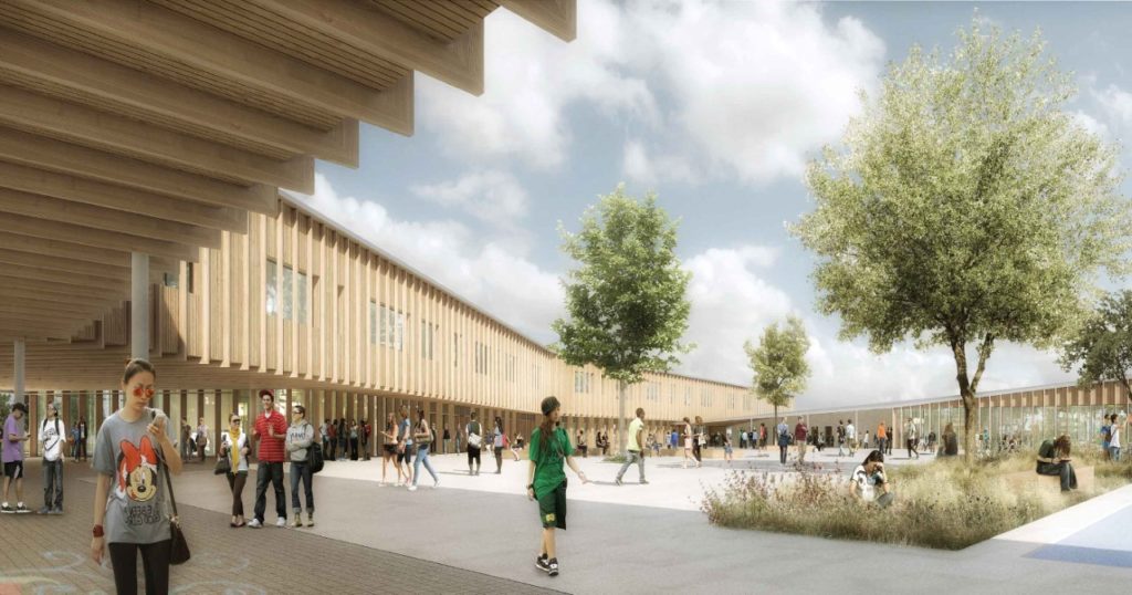 Récupérer l’eau de pluie pour alimenter les toilettes de ce nouveau complexe scolaire, permet d’économiser l’eau potable devenue un enjeu majeur face au réchauffement climatique. Une chasse d’eau représente environ 5 litres d’eau, c’est donc une belle façon écologique et économique de réutiliser cette eau de pluie.