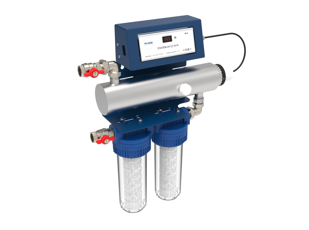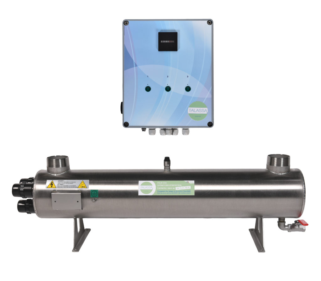 Celle-ci est protégée de l’eau par une gaine quartz servant d’isolant électrique et thermique. Le coffret de commande est directement positionné sur le corps du réacteur UV.
